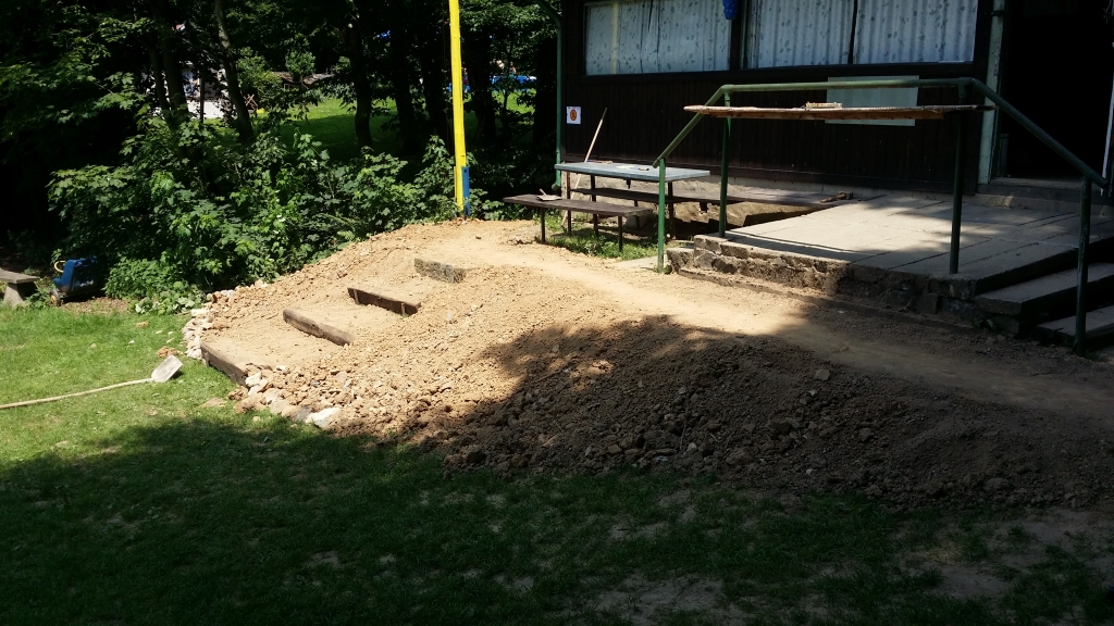1.7. Proběhla další brigáda na osadce. Tentokrát se betonovala podlaha v kůlně a protože nám trochu betonu zbylo, dostala nový povrch i cestička před chatou. Také jsme odebrali drny od horního kurtu a úplně zakryli novou zemní úpravu před osadní boudou. Vypadá to, jako kdyby to takhle vypadalo odjakživa. Je to nádhera. Však se přijďte přesvědčit sami. VELIKÝ DÍK VŠEM PRACUJÍCÍM. Kdo nepřišel připravil se o velkou porci legrace, co jsme užili. V neděli byl beton již tvrdý a proto jsme nastěhovali osadní binec zpátky na své místo. DF