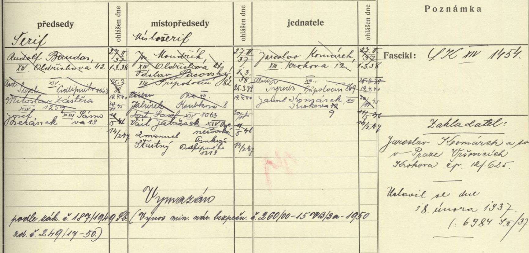 27.2. 1937 – březen 1938 (Bandasovi bydleli v Oldřichově 42 tedy přímo vedle restaurace pana Fáry, kde osada vznikla)