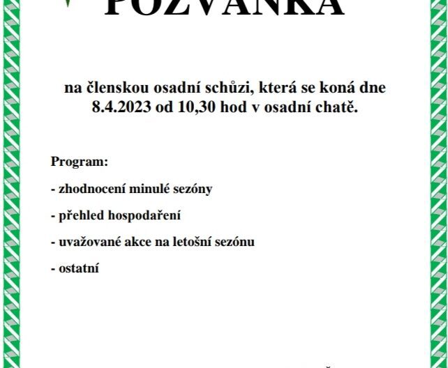 Milí kamarádi! Zveme Vás na osadní schůzi. Uznávám, že je to dost brzy z jara, ale události se valí jako rozvodněná Sázava a tak není čas otálet. Přijďte každý, kdo můžete.